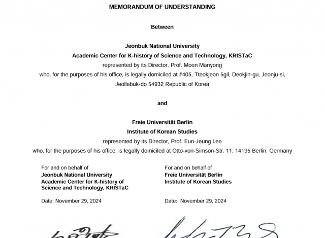 전북대학교 한국과학문명학연구소 K학술확산연구센터 - 베를린 자유대 한국학과 MOU 체결